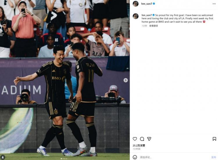直播吧8月26日讯 在美职联洛杉矶FC1-1战平达拉斯FC的比赛中,孙兴慜任意球破门打进个人美职联首球。孙兴慜也在个人社媒晒照纪念,配文写道:“很自豪打进我的首粒进球。我在这里收到了热烈的欢迎,也得到了球队以及这座城市满满的爱,终于我将在下周迎来首个主场比赛,已经迫不及待想要见到大家了。”...